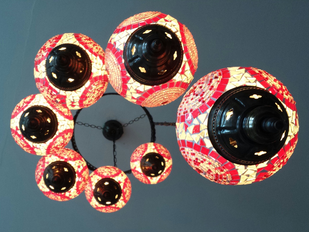 I was sitting in the middle of the room at one point during the day, and looked up at our light from directly below. We bought it in Turkey a couple of years back. It looks fabulous hanging as a spiral from the roof, but I'd never looked at it from this angle before.