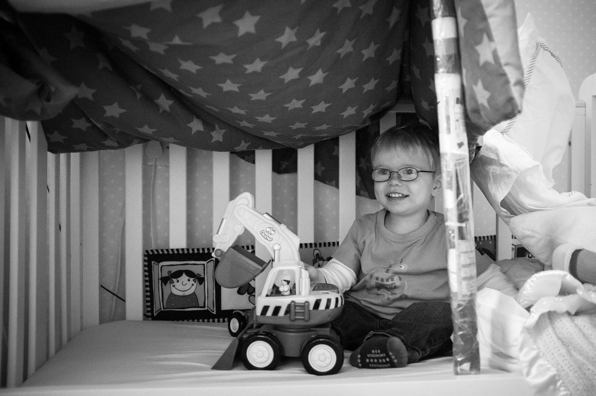 I think he believes he’s not allowed out of his cot without us.