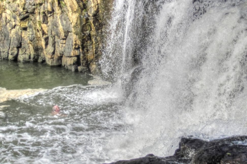 Homeward bound today but stopped to see the Haruru falls before heading to Kerikeri airport. This early morning swimmer certainly gives himself a challenge as he was making slow progress towards the waterfall – but not through lack of effort.