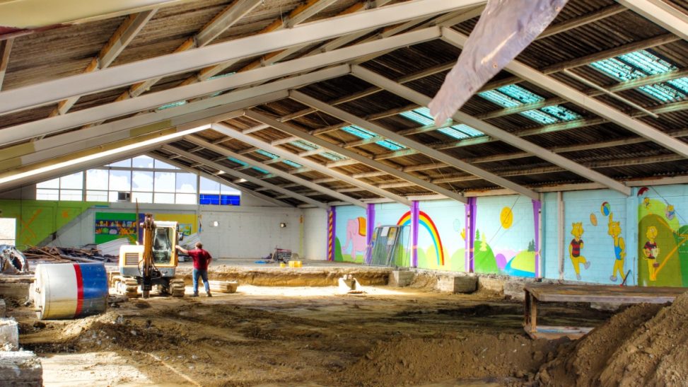 The building is steel framed so stood up well to the earthquakes, but a lot of [url=http://www.blipfoto.com/entry/4174705]liquefaction come up through the floors[/url] – and what a mess that was!!! Today I noticed that the frontage had been removed so stopped to have a look. The interior has been gutted and the digger is removing the concrete floor. I guess that will be replaced, the interior painted, and then the building will ready to start life again as the home of another business.