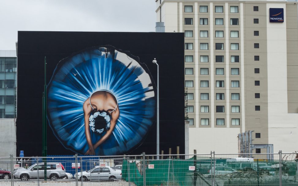 There are many murals painted on walls around the city, but this one definitely appeals to me a lot more than most of them. The painter wasn’t working on it today, but guess the misty drizzly weather could be the reason for that.