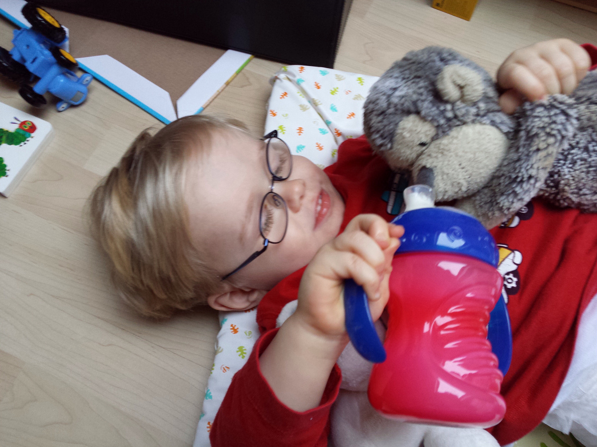 We went through all the normal routine, however tonight CJ wanted to share everything, including his milk with Puddle. This meant that things took a little longer than normal, but that was ok as it was nice to sit and read him and Puddle their bedtime stories, while watching him lay there smiling at me – something he hasn’t done since he was little (normally he is busy playing with Puddle or being cheeky).