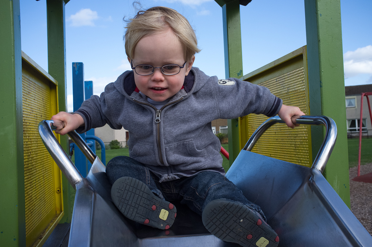 He loves slides, and he’s a climbing machine. The stairs were too easy so he kept going up the rope ladder and climbing wall to go down the slide. So cute.