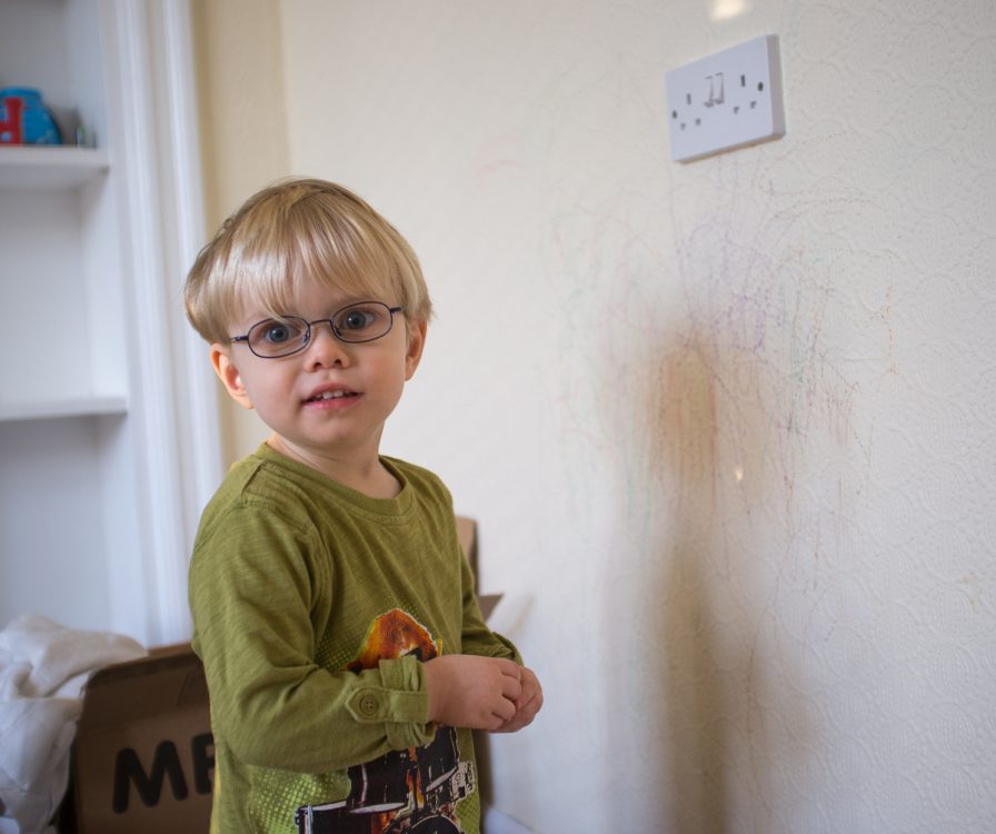In the middle of trying to sort out our new house (and failing), CJ took to the walls with crayons.
