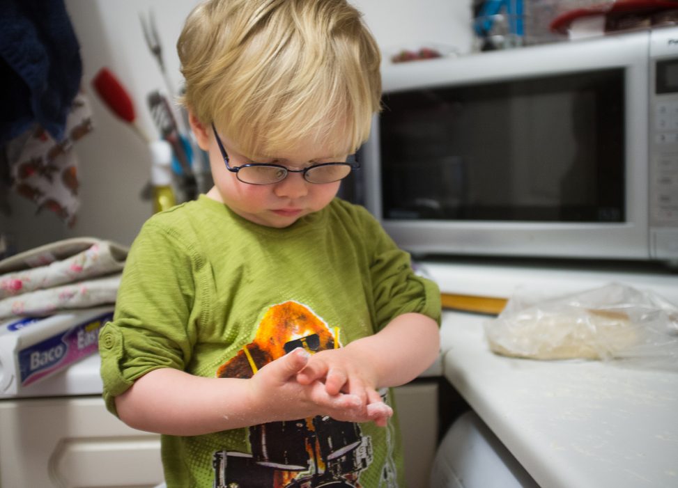 He’s taken a little while to warm up to getting messy hands, but tonight the flour was flying.