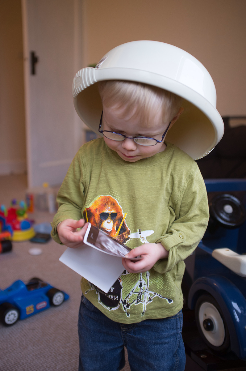 I had hoped to get a nice photo of CJ holding my scan photos – CJ’s idea of a nice photo included his new hat… Oh well, I will have to try again after the next scan.