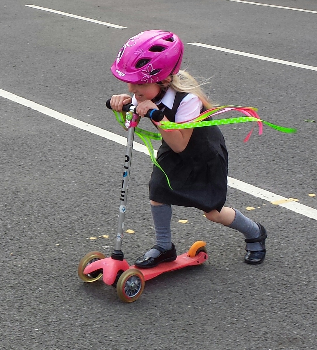 It also means the kids are staying on after school with their mates to enjoy the large playground, with tassles flying, and their 'determined speed smiles'.