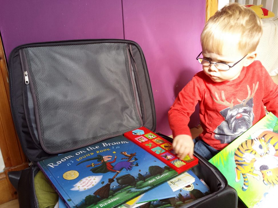 Unfortunately, I only managed to get a few clothes into CJ’s before he decided to help by packing his essential items – all his story books.