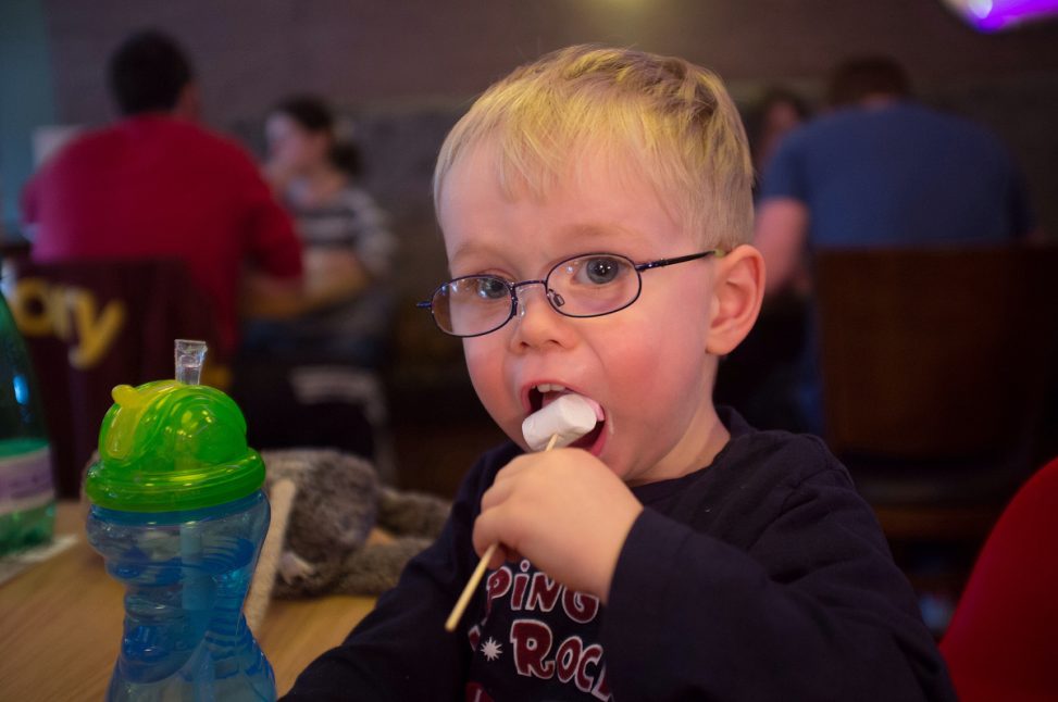As the roads were pretty busy, we decided to have a quick dinner at the local Chinese Buffet, before starting the journey. CJ’s favourite where the prawn crackers until he discovered the desserts, which included marshmallows and chocolate to dip them in!