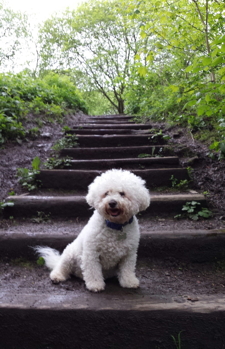 The tall trees provided a canopy from the rain, and a smiley happy Joey loved his run in the park.