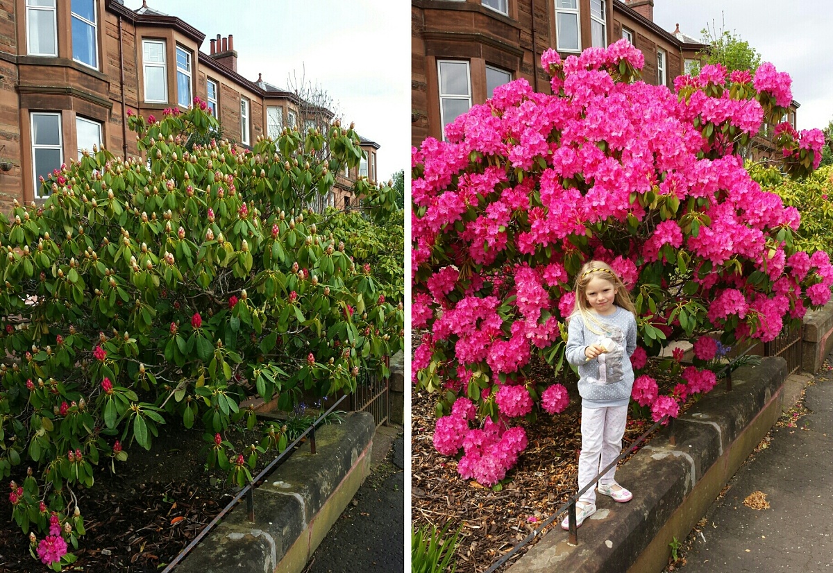 We have been watching this tree daily on the school run. In only 10 days it has transformed from 'boring green' to today's happy bright pink.