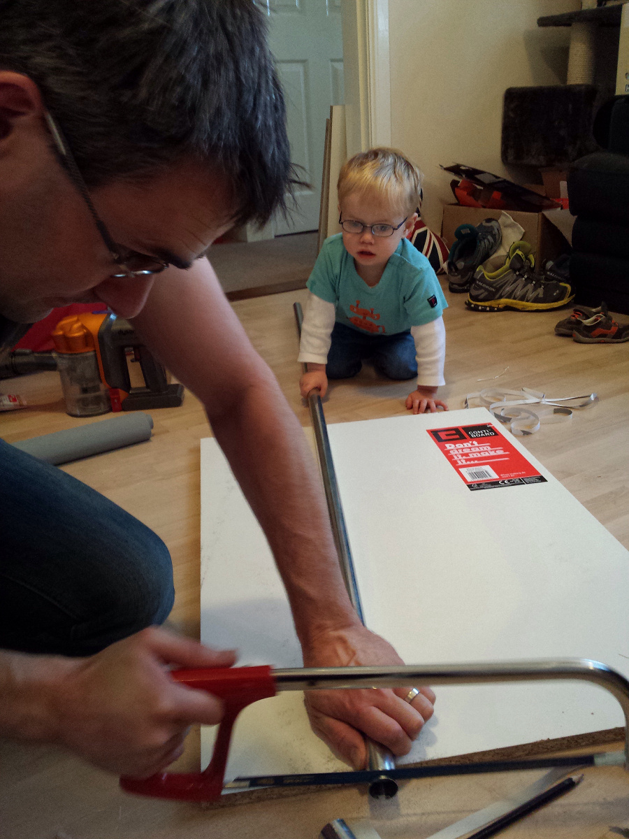 CJ loves helping his dad with DIY – it doesn’t matter what they are doing, so long as he can help. And as the main job today was putting up the new blackout blinds, there was plenty he could help with! This was one of my favourite moments – he was trying so hard to hold the bar, but was so busy watching S2 cut the other end, that it kept getting away from him.
