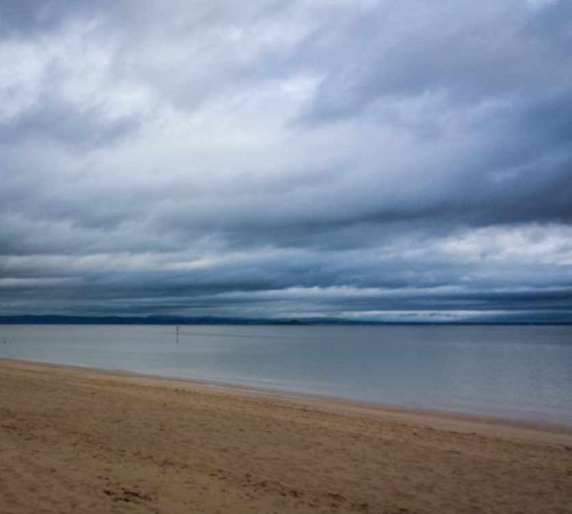 It was lovely riding along the waterfront. Golden sand and threatening clouds.