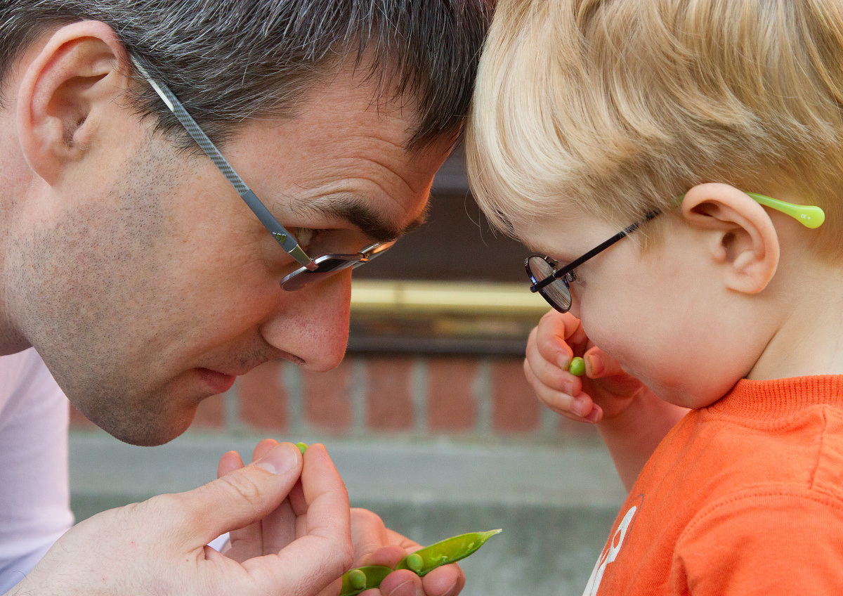 He ate about 70% of my peas, but I didn’t really mind sharing. After all there’s few moments as heart-warming in our family as sharing the treasured fresh pea pods.