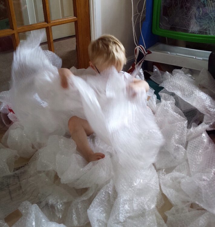 Looking back there was definitely a difference in opinions on what should happen to bubble wrap! And it’s not wonder I had a tough job keeping him away from my sorted pile!