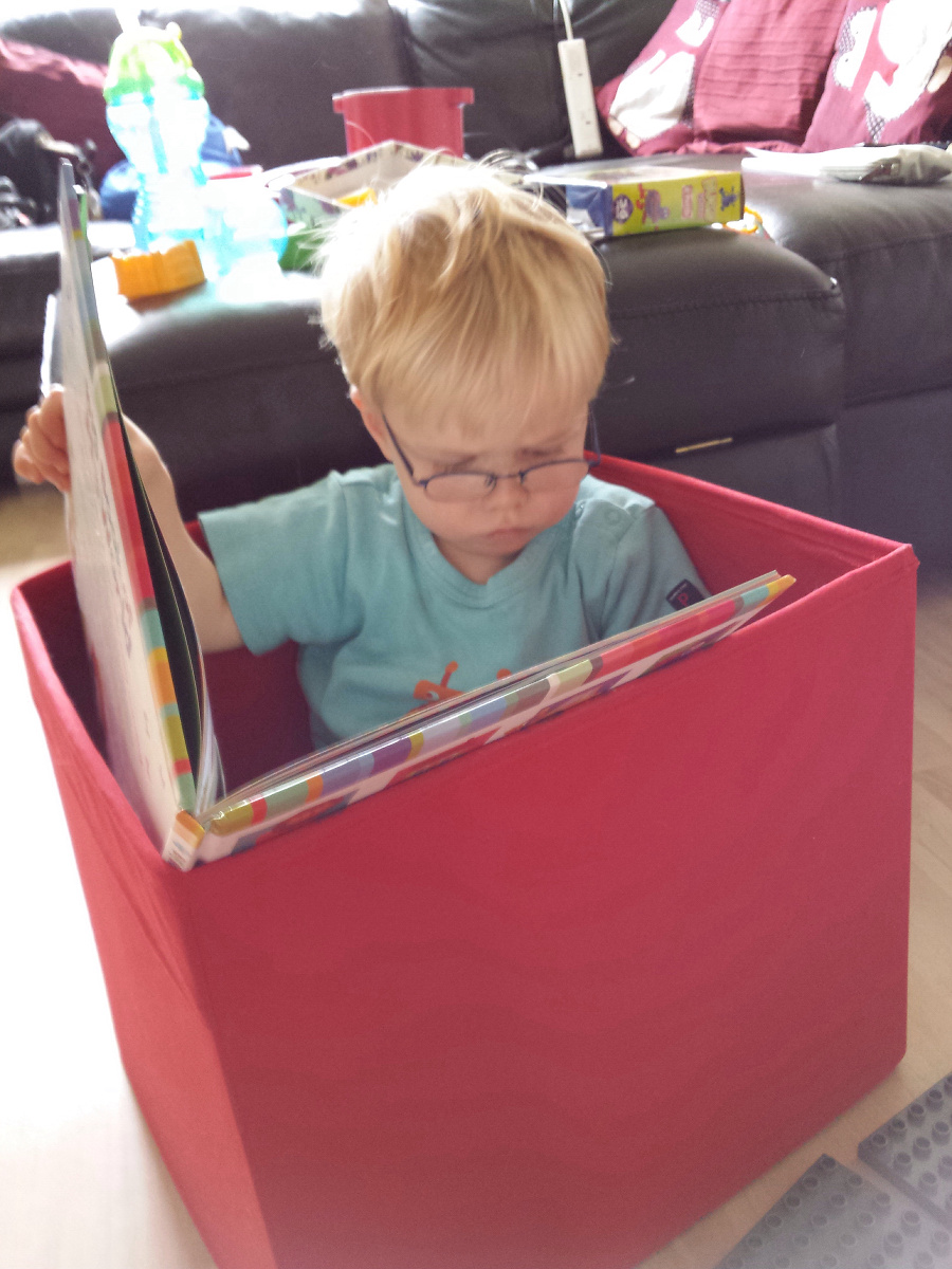 Today CJ and I spent the morning tidying the house and getting everything ready for our trip south. For some things CJ was very helpful, for other tasks he was not! In particular while I was trying to pack all his toys into a box he decided he would rather sit in the box and read!