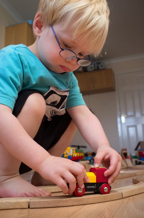 Soon his favourite yellow train was marching laps around, up, down, in and out.
