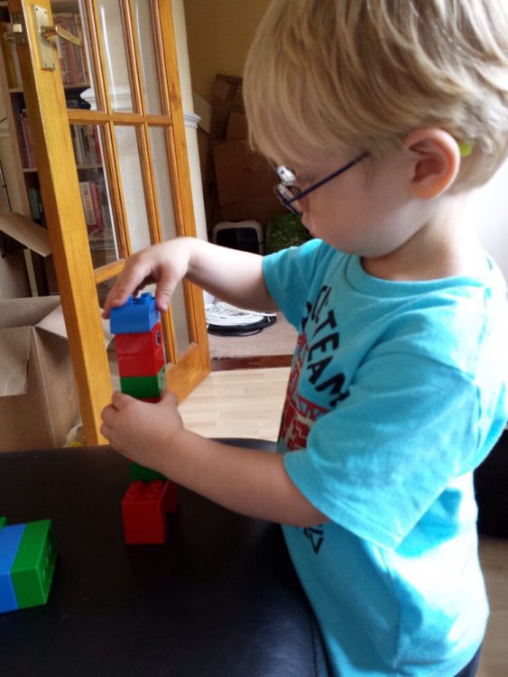 After we got home, CJ and I just had a quiet afternoon playing in the garden and toy room. CJ’s big discovery for the day were the board games that I had unpacked yesterday. One in particular caught his attention – My first builder. It is a game with duplo, designed for toddlers. CJ didn’t really understand the game part but really enjoyed building things with the duplo and matching the blocks with there shapes and colours on the game board. I think he will really love this game once he’s a little older.
