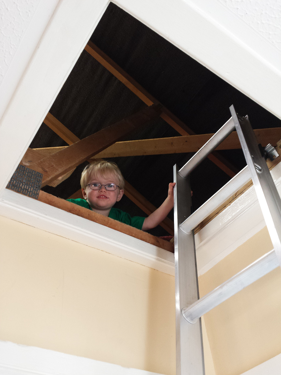 I asked him if I could trust him if I left him up there alone. He considered it and said “Yes”. Then when I said, and be careful of the hole, he said “Yes”.