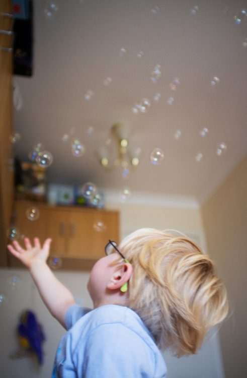 The poor wee man wore himself out completely chasing magical bubbles around the toy room.