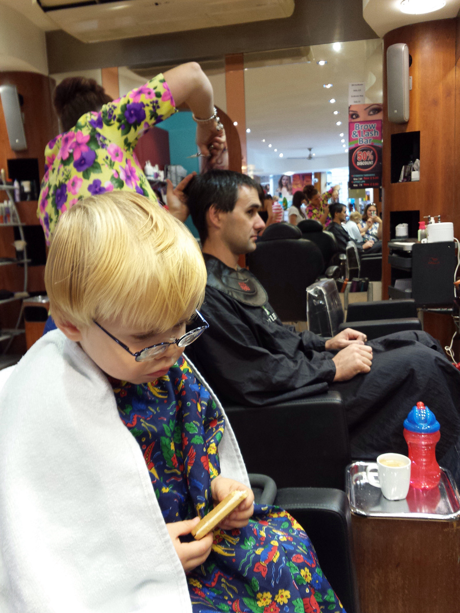 This morning started off with a boys trip to the hairdresser. CJ loved being able to sit beside S2 while they both got their hair cut and he was very well behaved!