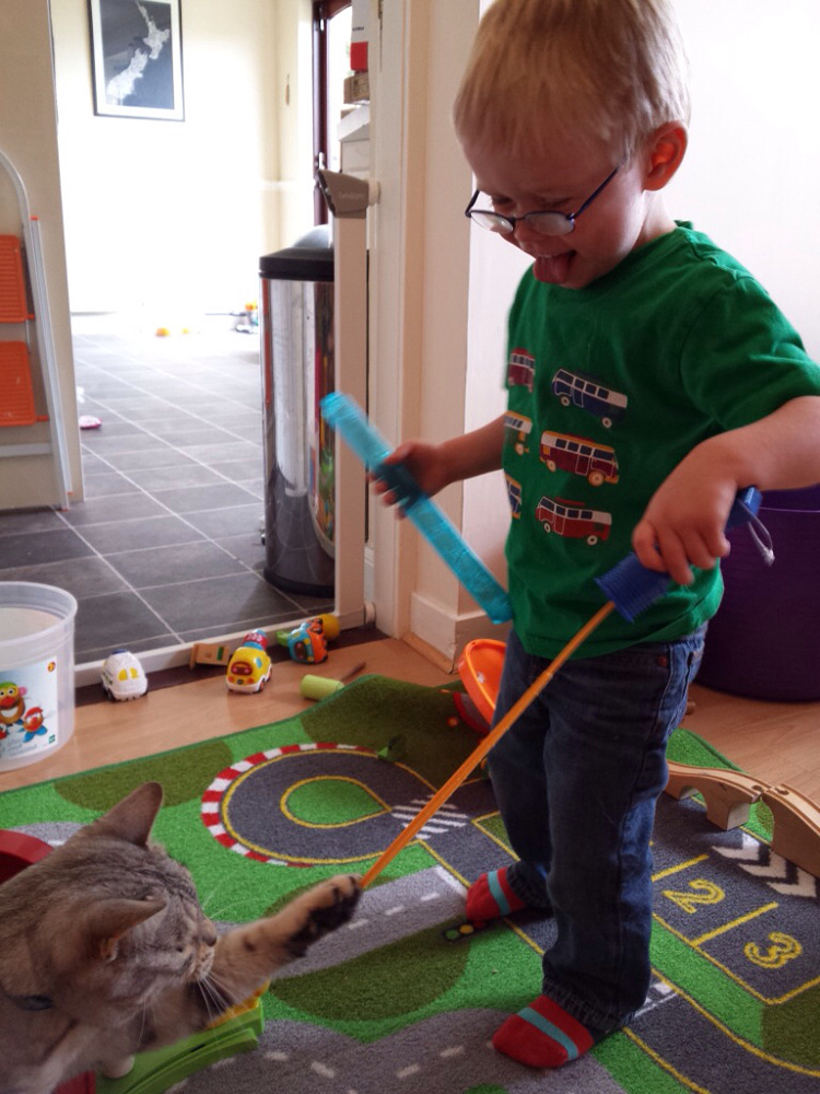 Although, once he figured out a Pixel would play with the wand, he was very content to stay at home and play for a while!