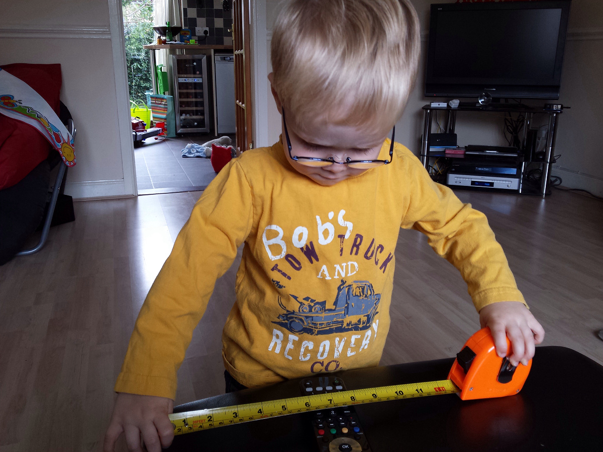 Today we had a morning at home getting ready for our visitors. While I did some quick tidying, CJ decided to carry on with the DIY from last night and was busy measuring everything!