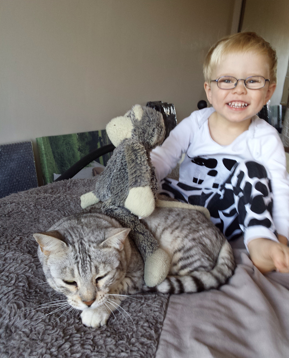 In the morning CJ often runs into our room and straight up onto our bed to say good morning to Pixel. This morning however he was determined to share Puddle Monkey with Pixel and decided that the best way to do this was by getting Pixel to give Puddle a horsey ride.