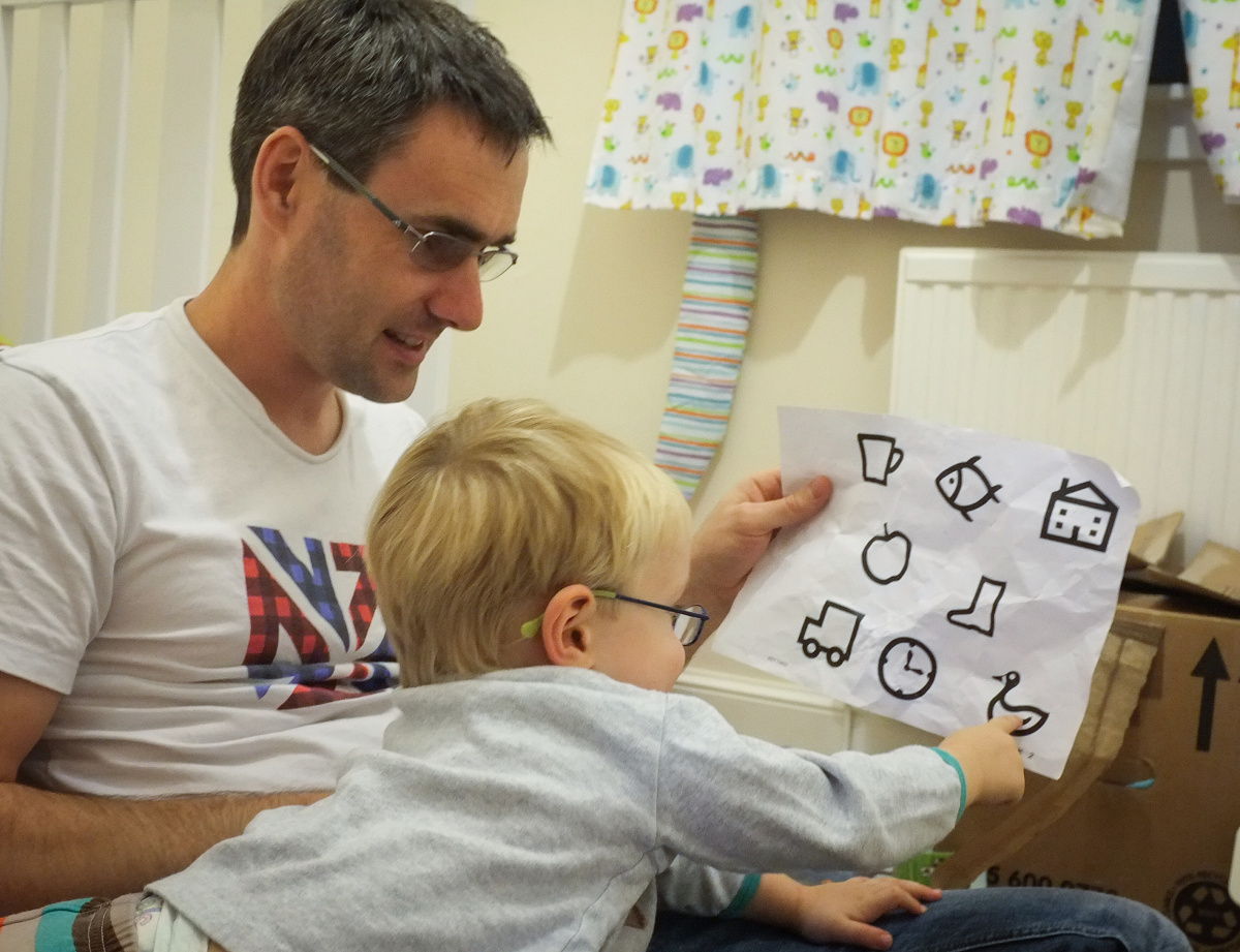 As part of CJ’s eye tests he needs to recognise some pictures and point them out. After our last appointment (and CJ not really being able to name any of the pictures) they gave us a sheet with the common pictures so he could learn to name them – an exercise we have been doing nightly.