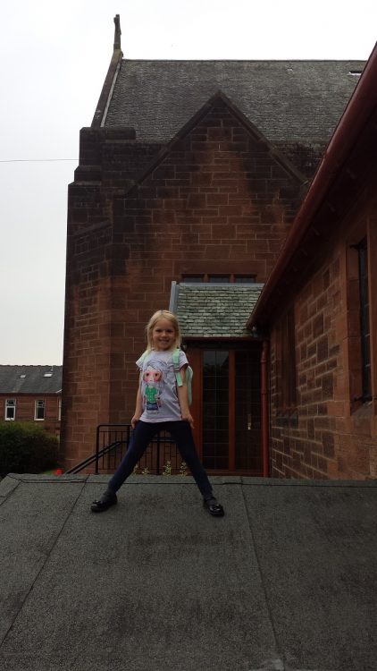This is the sort of smile I has when she is somewhere she probably shouldn't be… like being on a roof pretending to be a monkey.