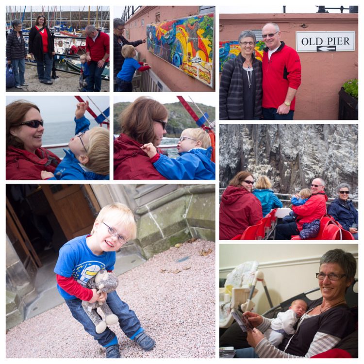 Today we took Nan Be and GD to see the gannets at North Berwick. Luckily there was a child friendly boat tour so we headed down to the meeting point in the harbour. While we were waiting to board, CJ and Nan Be checked out the local art work. Once boarded and the safety talk finished, we were on our way.