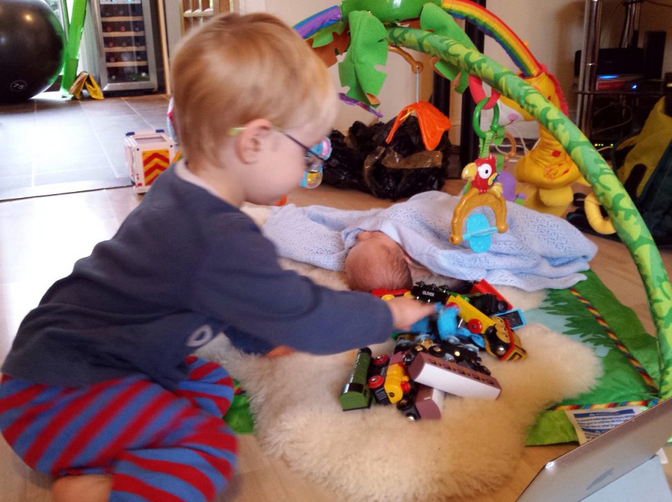 We started off by having a Skype with Grandad – CJ took the opportunity to show off his train collection, not only Grandad but also LJ. He was very cute running back and forth from his train track with a new train each time. But despite the rather large number of photos I took, this was the best one – he simply moves too fast for a decent photo on the phone! LJ was very good and slept through the entire call.