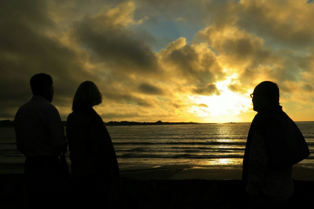 Then off to town to meet with their family in a delightful French cafe. Fortunately we had time to admire the sunset on Vazon beach while waiting for the bus.