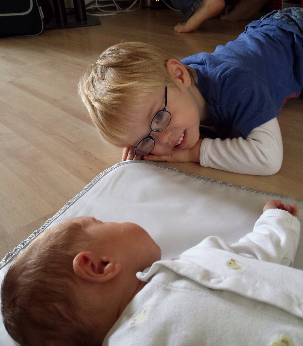 Today was a day for watching. But today was different as LJ was also busy watching him. CJ was fascinated at this new development – so he just lay there watching his little brother.