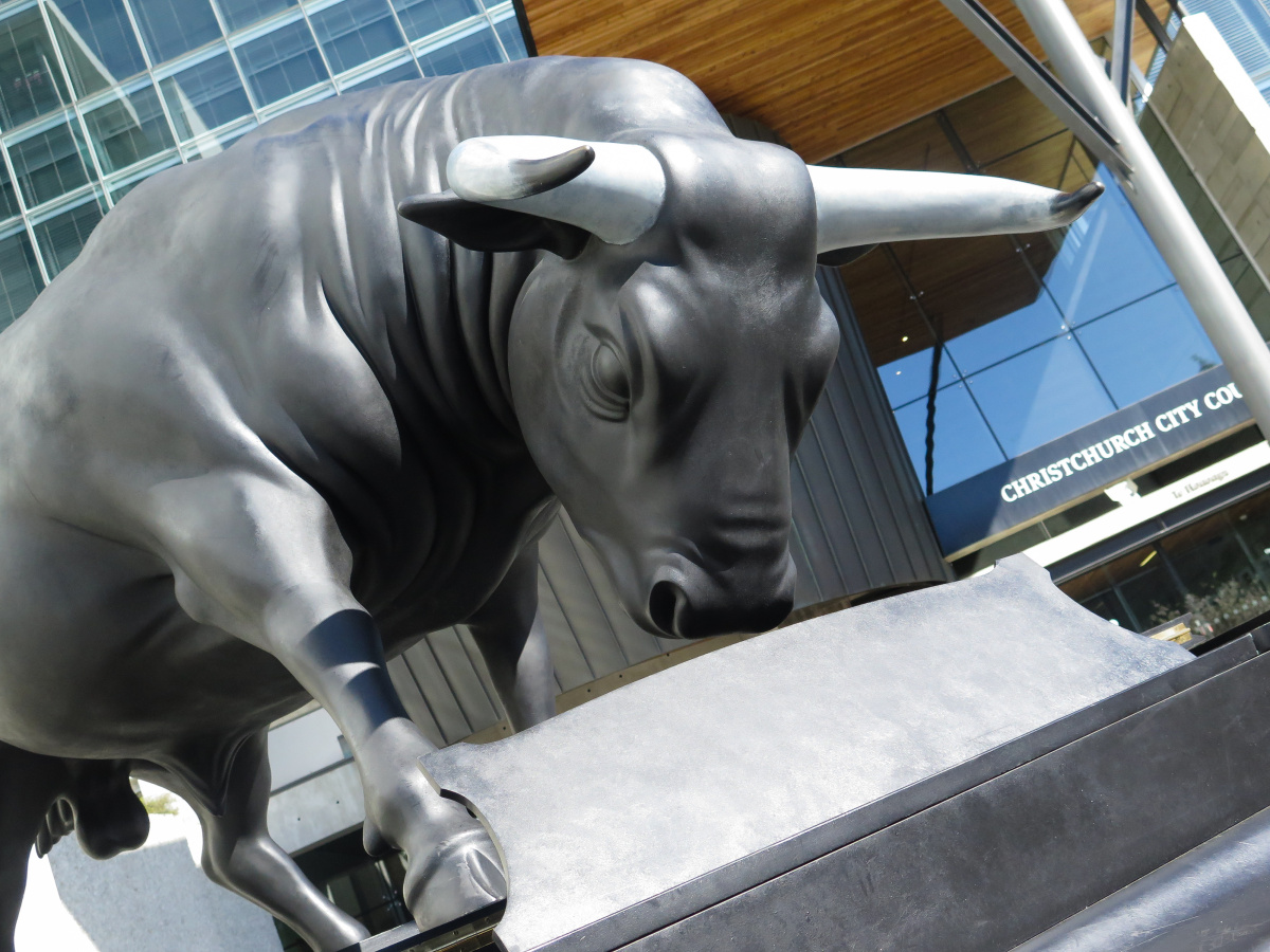 Stopped for coffee in Worcester Boulevard …………… and then we found The Bull. I knew he was to be on display in front of the art gallery when it reopens, but I didn’t know that his temporary home is now at the city council entrance.
