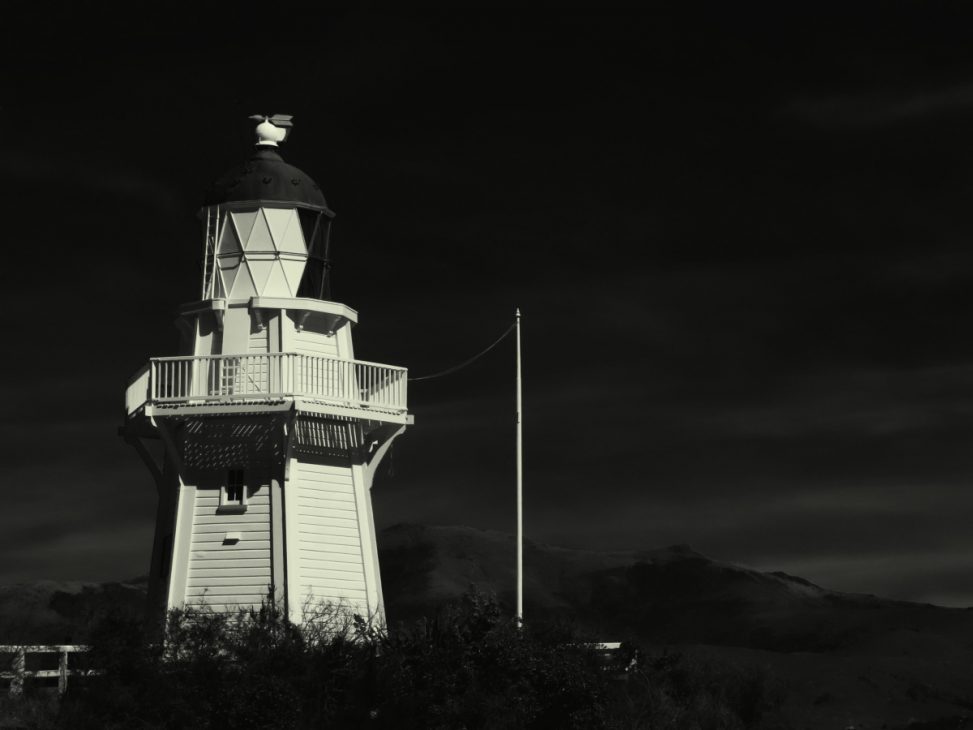 The iconic lighthouse in Akaroa gleaming in the morning light.