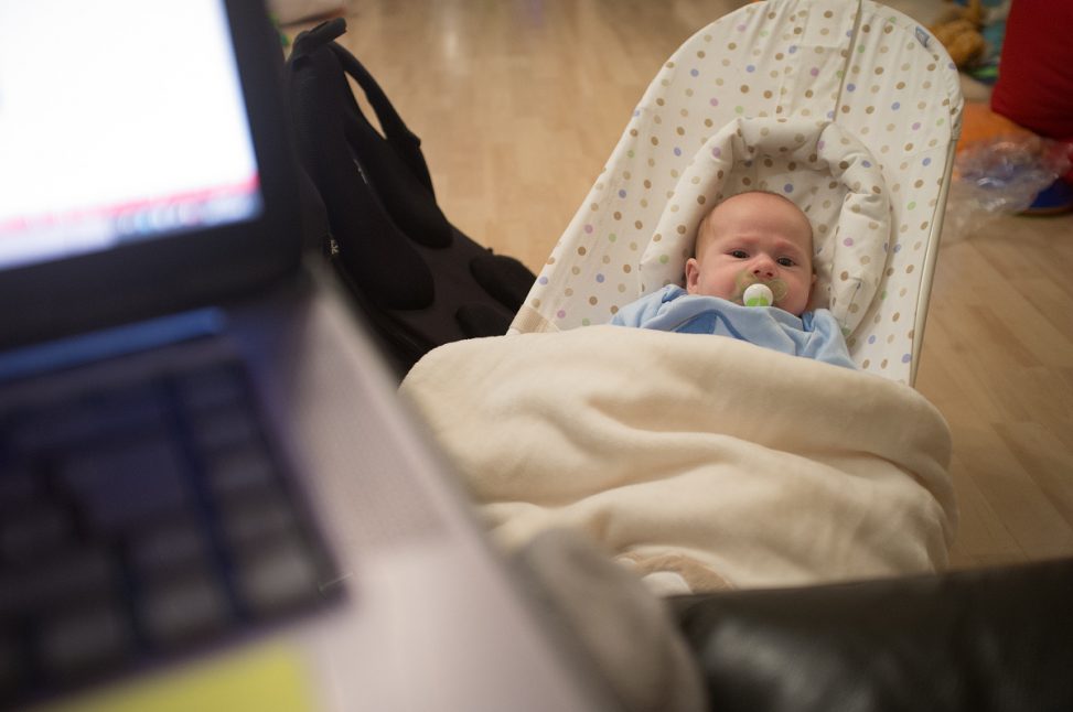 Here I am showing off my ability to bounce a baby chair with one foot, and simultaneously type out some work on a bouncing laptop.