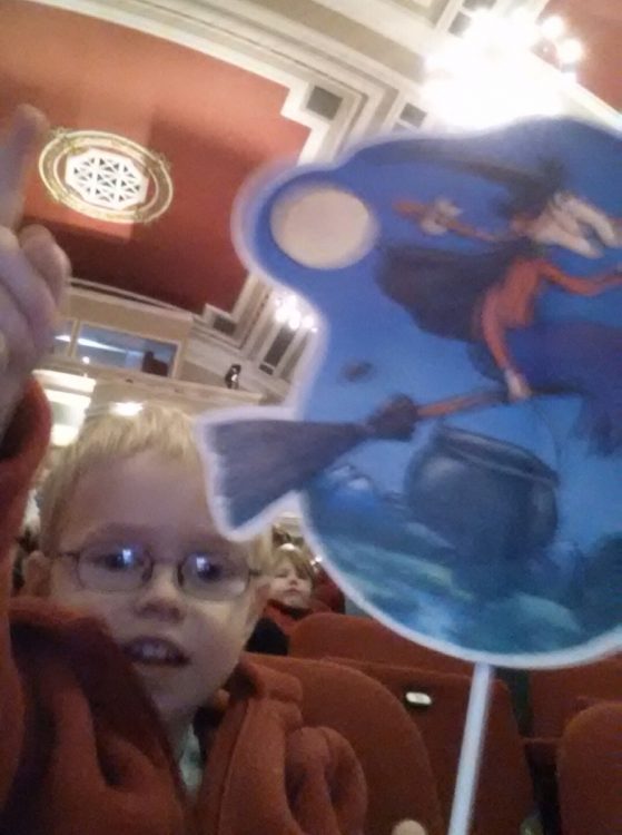 Today we had a special treat for CJ – we were going to see Room on the Broom live at the theatre.