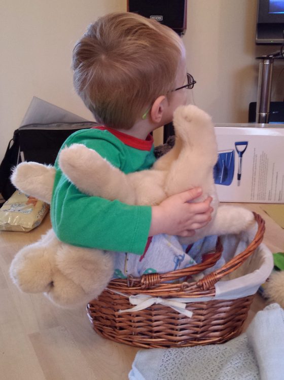 CJ likes to bring all his soft toys from his bed downstairs in the morning. This means I have to carry about 10 toys and therefore can’t carry anything else. So, we started a new system – only the toys that fit in the basket can come down stairs with us. CJ is very good and will rotate the toys so they they all get a turn coming down stairs – except for the current favourites which usually make the trip everyday!