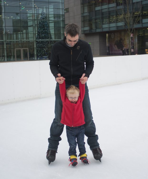 Holding tightly onto my hands, we were soon sliding around the ice together. He had a grin from ear to ear and so did I.