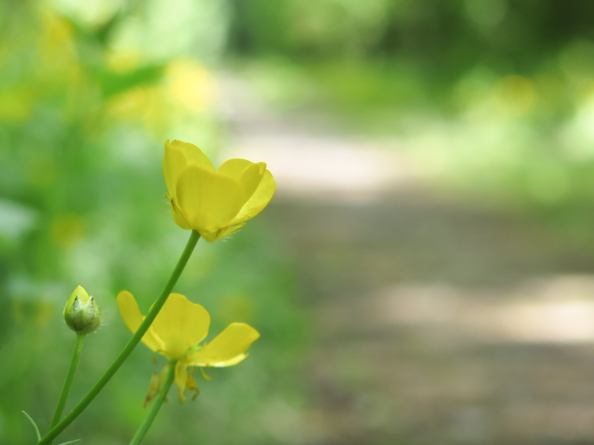 Some areas of the forest are a mass of these yellow flowers swaying gently in the breeze, so while molly was poking about and chasing imaginary rabbits, I took time to crawl around on my hands and knees to get a photo!!