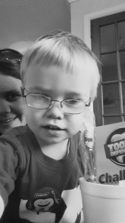Today at playgroup a local dentist came in to talk to the kids – so when I went to pick CJ up, he was carrying a paper cup with a new toothbrush, toothpaste and some reward charts. All he would say all the way home was toothbrush, toothbrush, toothbrush! He was so proud of his new toothbrush.