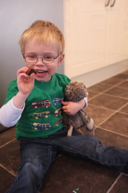 While I was busy putting together some of the Christmas gifts, CJ decided to come and see what I was doing – and his curiosity paid off as he found an open box of chocolates that he could help himself too!