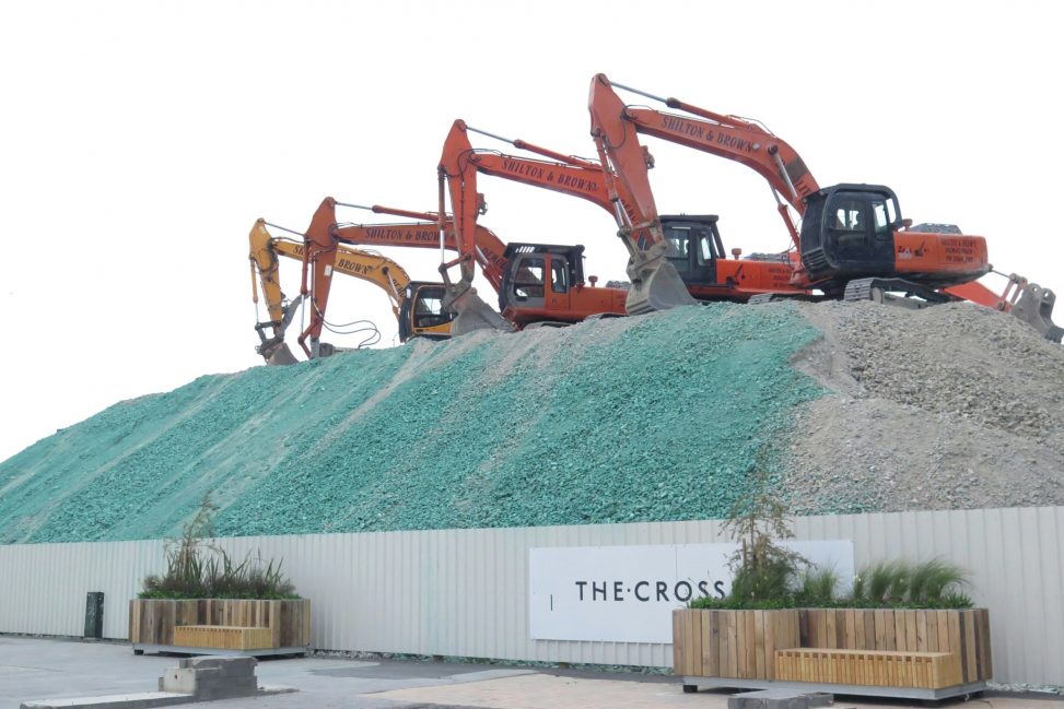 This used to be the bus exchange and car parking building. It was demolished recently and it appears the gravel has been reused to create an elevated ‘al fresco’ digger park !!!!