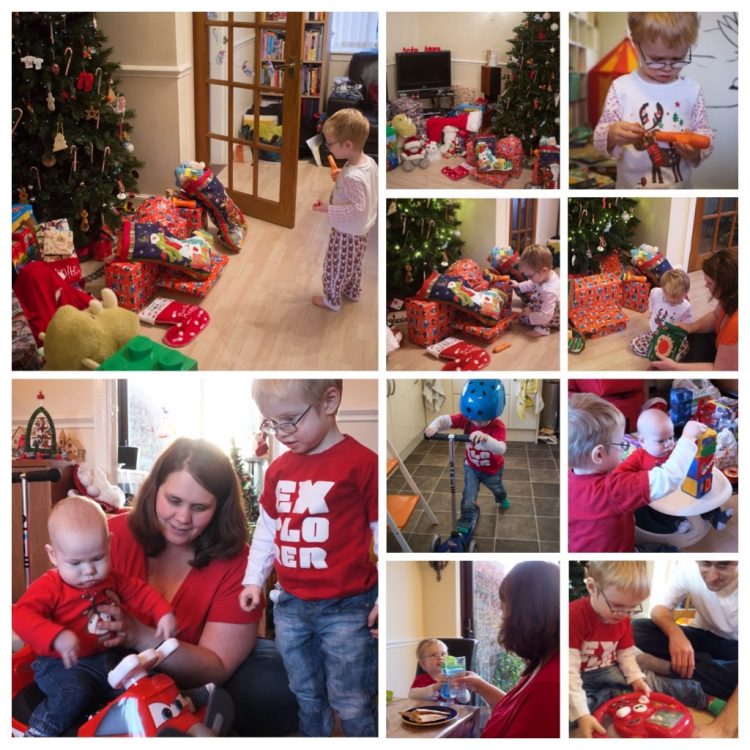 We started with a couple of items from the stockings, before we Skyped Nan Be and GD. While on the call with them, we let CJ open the gifts from them – but as he was rather delicate with the paper unwrapping items took quite a while.