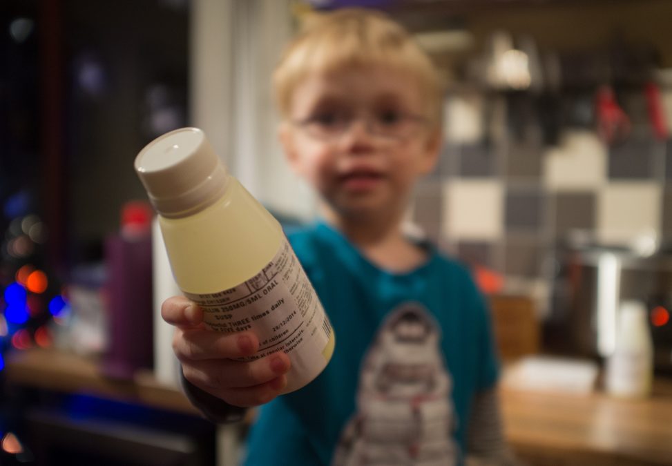 Today CJ joined LJ and I on our daily antibiotics. Apparently he has an ear infection.