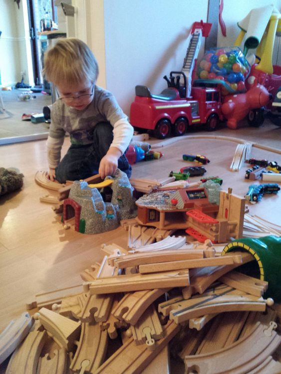 CJ loves his train track! He will spend hours build it, zooming the trains around it and then breaking down so he can build a new one.