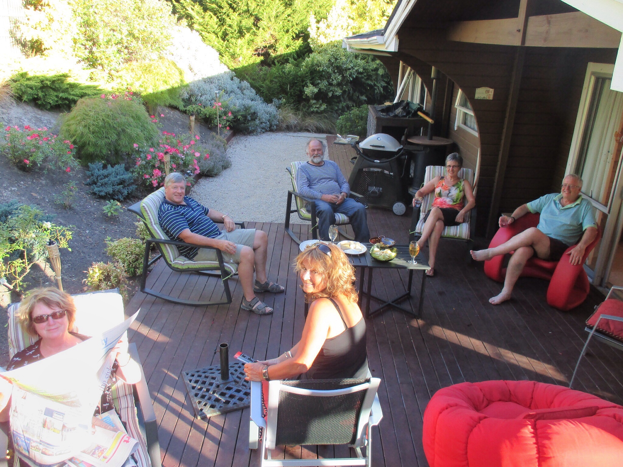 But this perfectly captures good friends relaxing with drinks and nibbles on the deck.