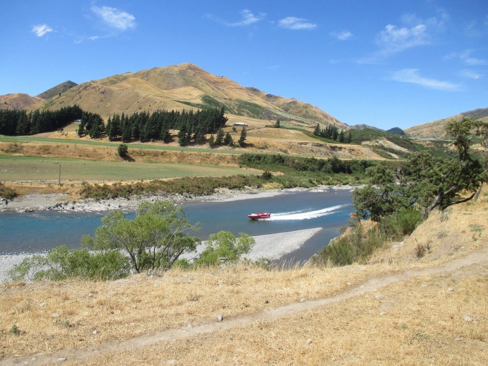 Fantastic views, with rafters and jet boaters on the river.