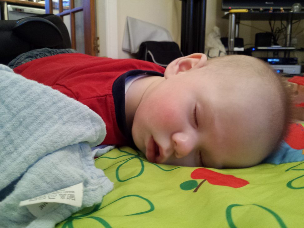 I commented that he hasn’t yet mastered CJ ability to fall asleep anywhere and everywhere… and sure enough he’s made a first step.